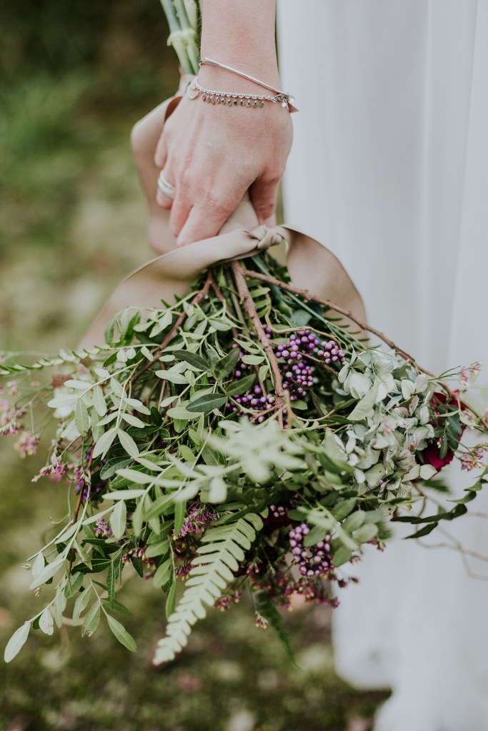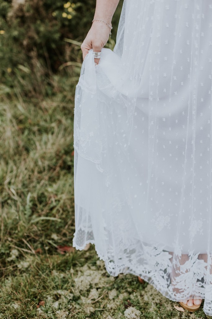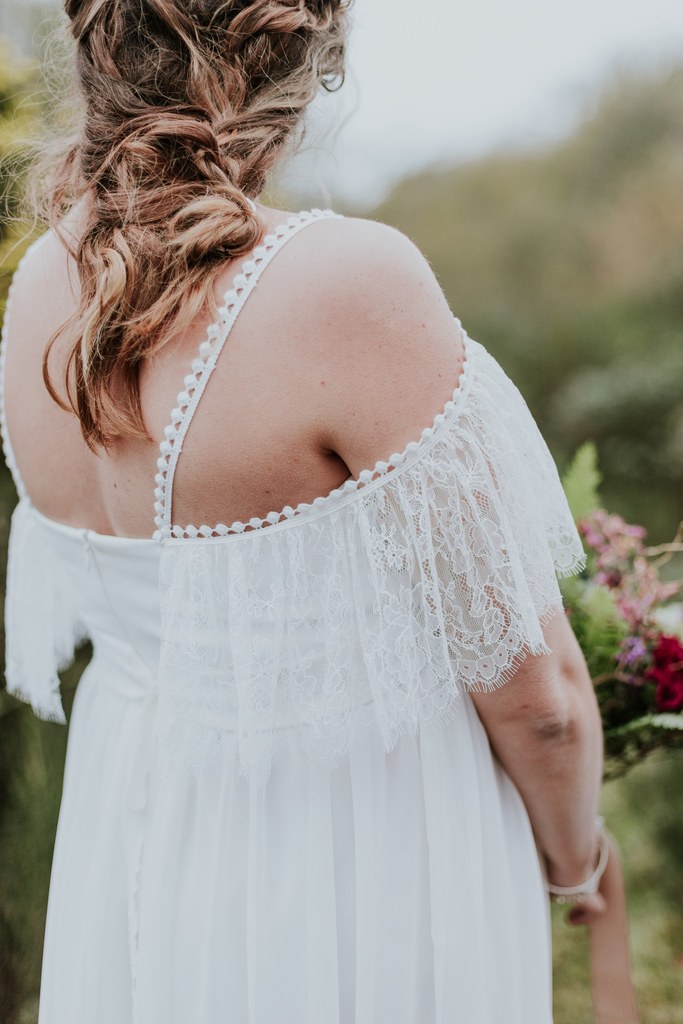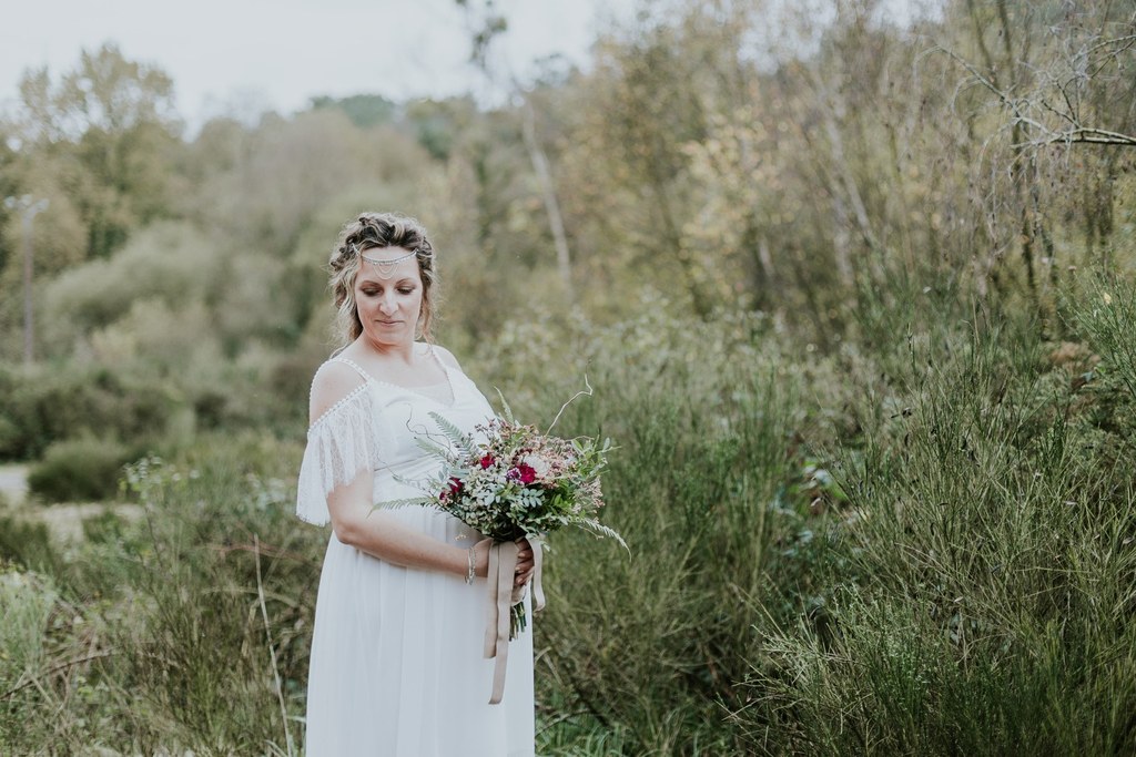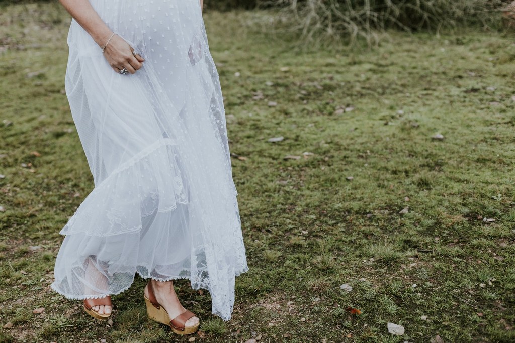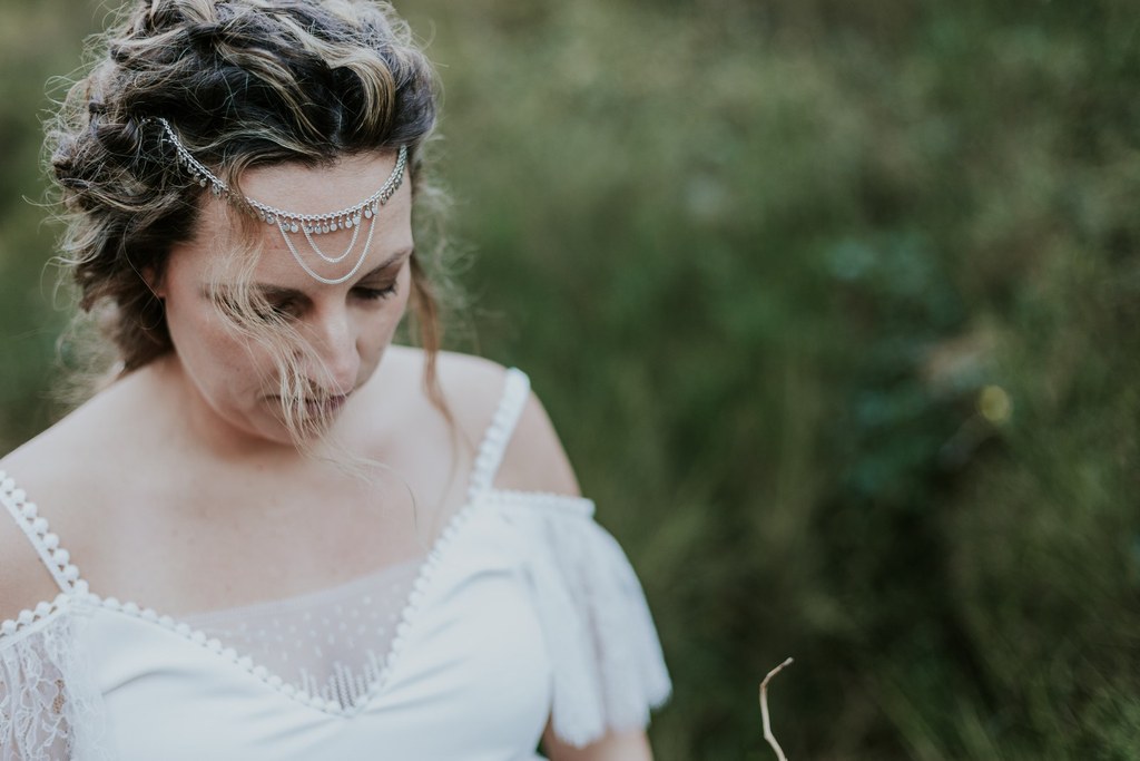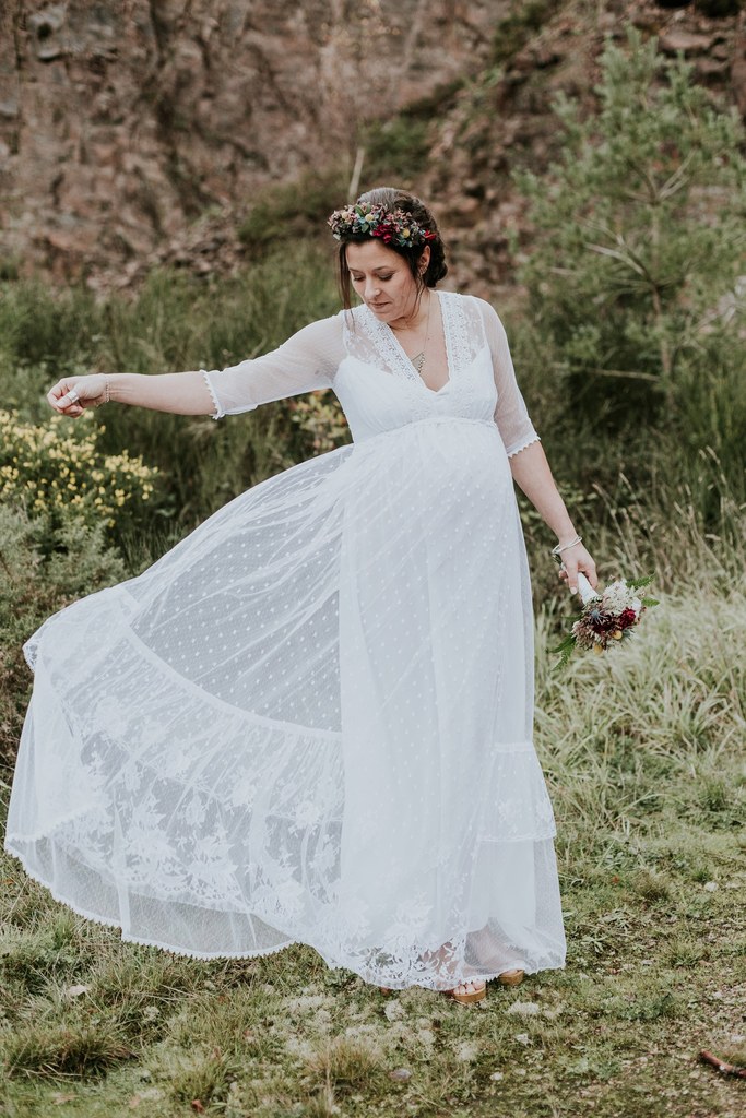 Armée de ses aiguilles et de son esprit créatif, Violaine décide de réaliser deux robes de mariée pour les futures mamans et de les mettre en scène dans un très beau shooting aux inspirations sauvages et hippies.