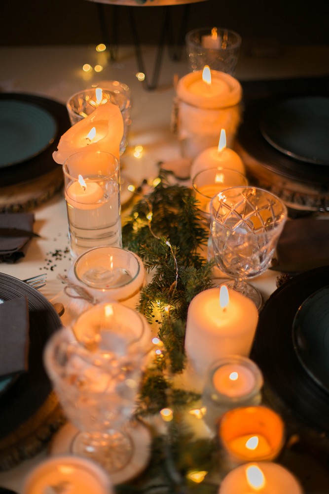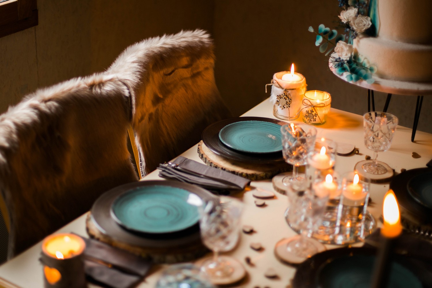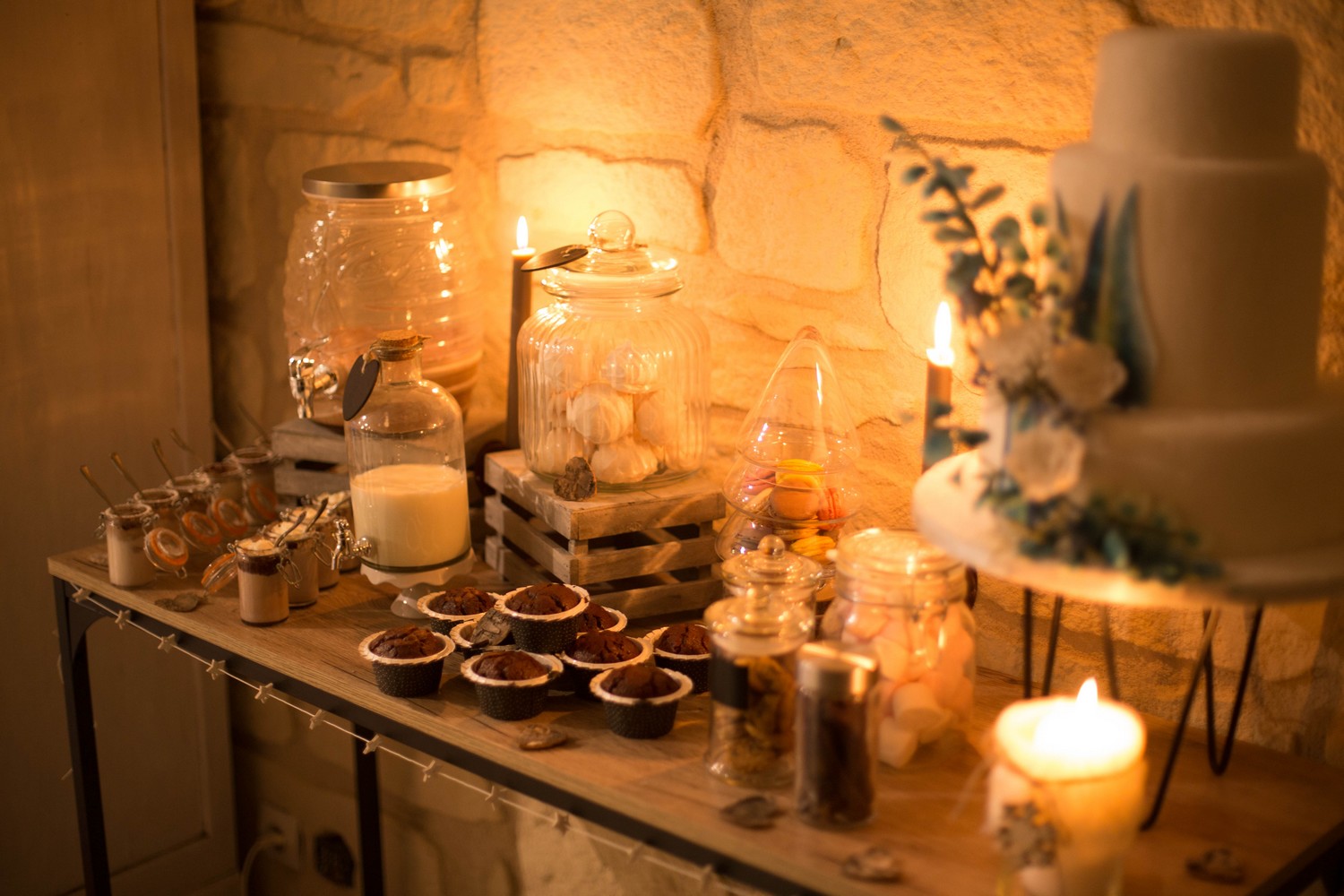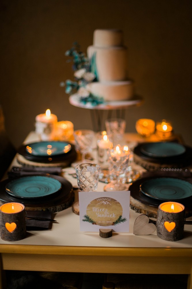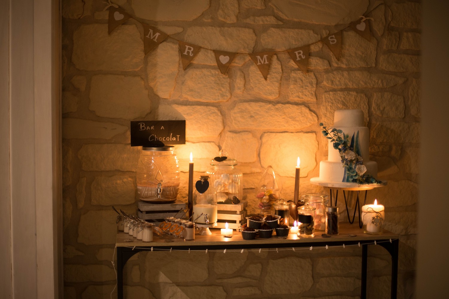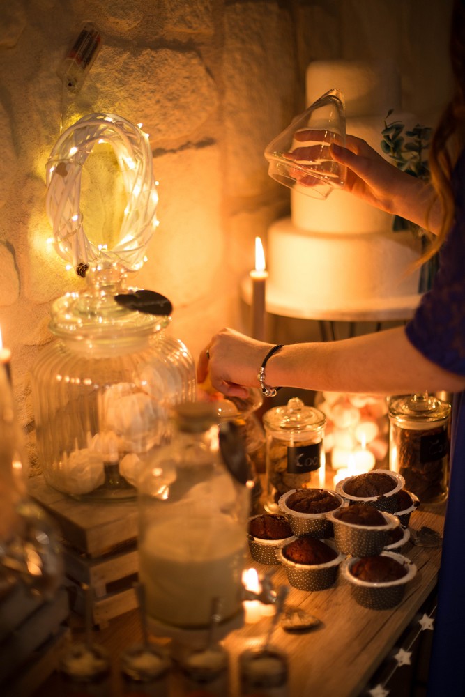 Enfin, après quelques séances photo sous la neige, il est temps de se réchauffer et surtout de réchauffer vos invités ! Pour les accueillir rien de mieux qu’un « bar à chocolat » en guise de vin d’honneur ! Grande gourmande que je suis, je ne peux qu’aimer cette idée… brownies, chocolat chaud, cookies ! Des douceurs sucrées en guise de goûter avant d’entamer la soirée à la lueur des bougies…