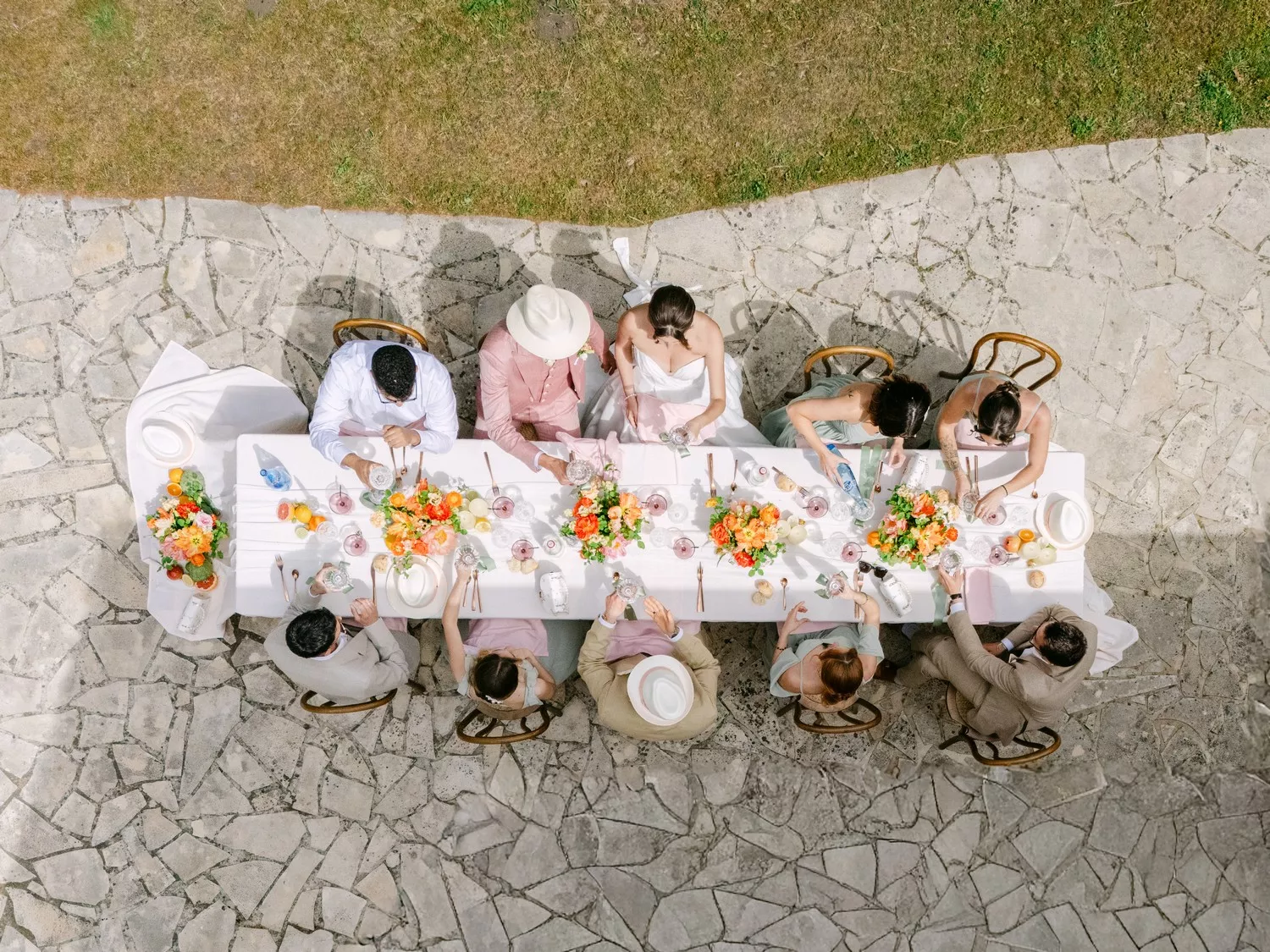 Puis vient le dîner en plein air, dans une ambiance chaleureuse et sincère, où la beauté du lieu dialogue avec les mets servis, sans jamais les éclipser. Chaque temps fort a été pensé comme une expérience à part entière, fluide et naturelle, où l’on passe d’un instant à l’autre sans rupture, porté par la douceur ambiante.