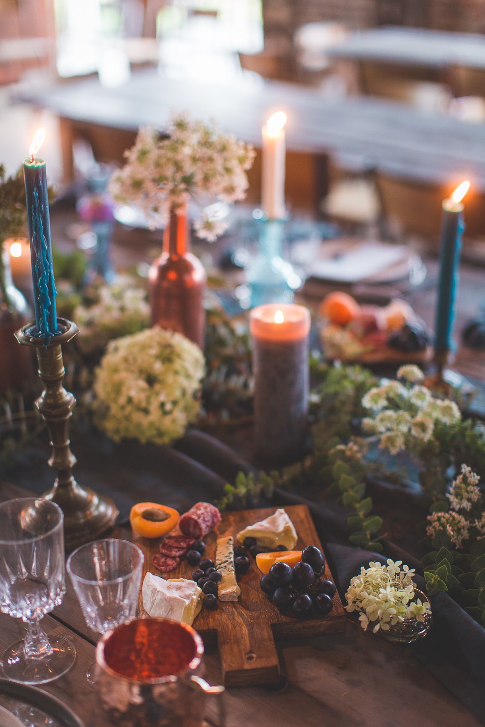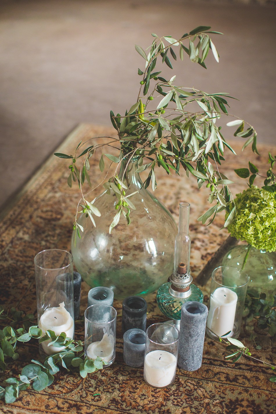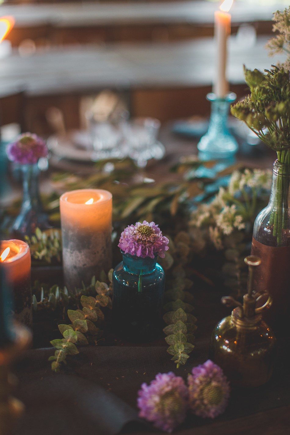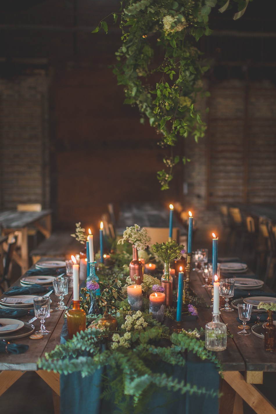 Pour ce mariage industriel et végétal, l’équipe a décidé de miser sur un lieu dont je n’arrêterai pas de vous vendre les mérites : les Bonnes Joies en Ile-de-France (je vous en parlais déjà ici). Mêlant vieilles briques, immenses verrières et pièces de métal ancien, le lieu regorge de surprises et ce, aux portes de Paris. Le décor se suffit à lui-même pour ne pas trop en faire. Quelques bougeoirs et photophores en cuivre ornent la table de mariage pour faire un rapide rappel à l’univers qui nous entoure.