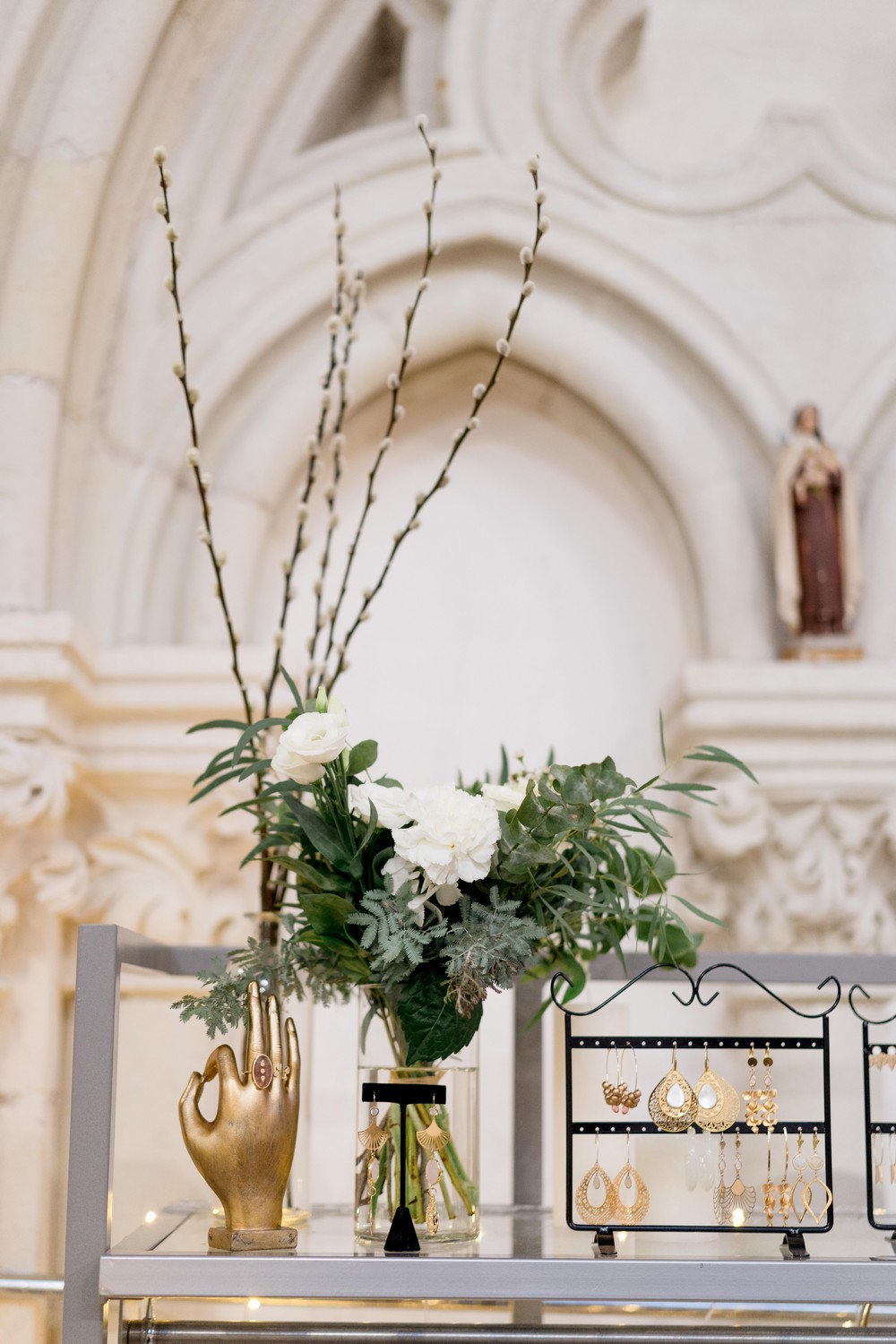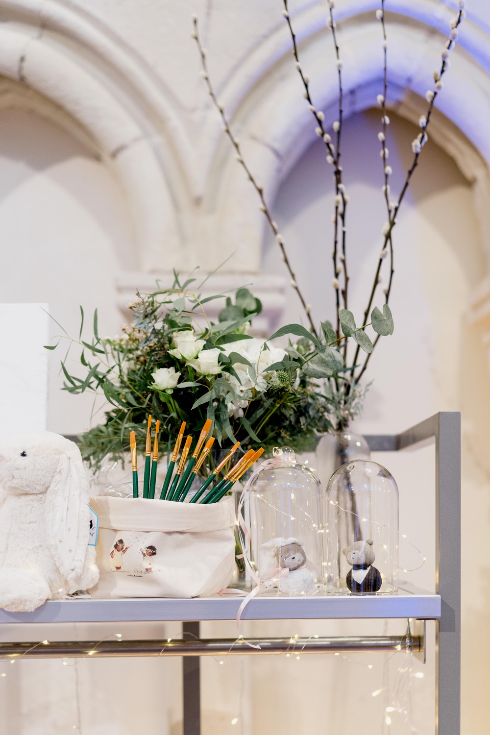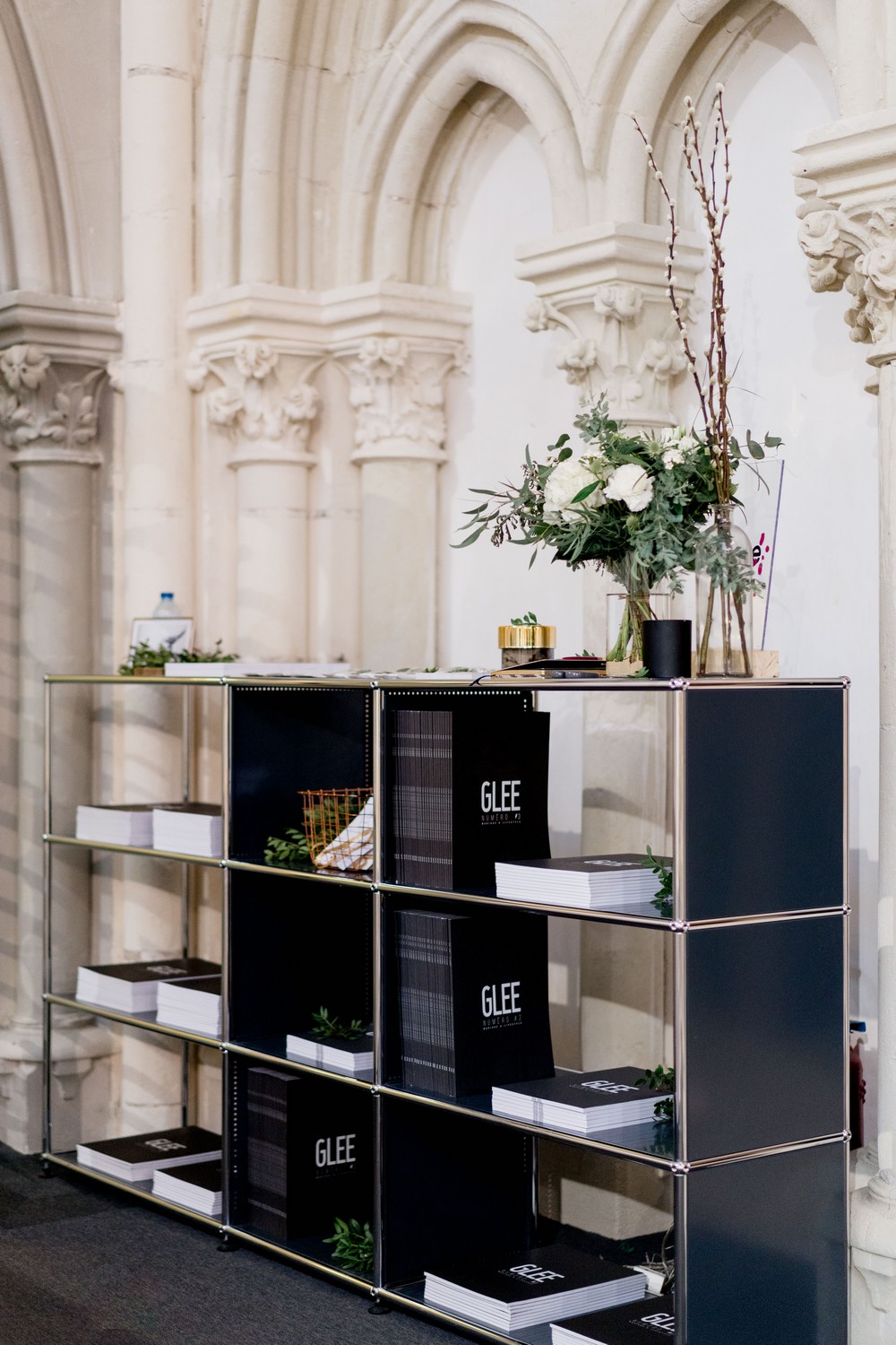 - Les stands subtilement décorés avec les créations florales de Briant Artisan Fleuriste (aviez-vous remarqué la réutilisation des portants, petite référence aux nombreux événements de mode accueillis par la chapelle ?)