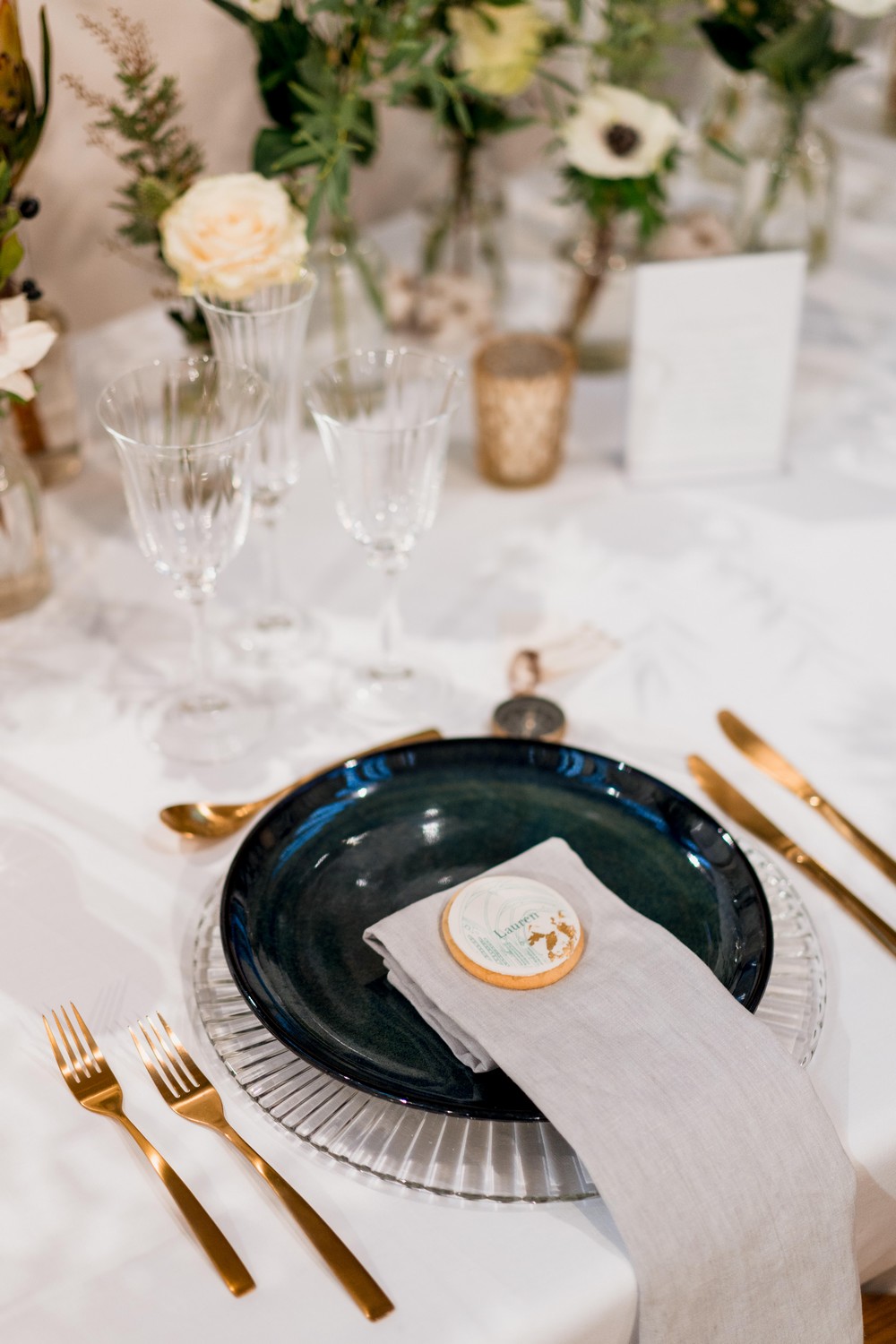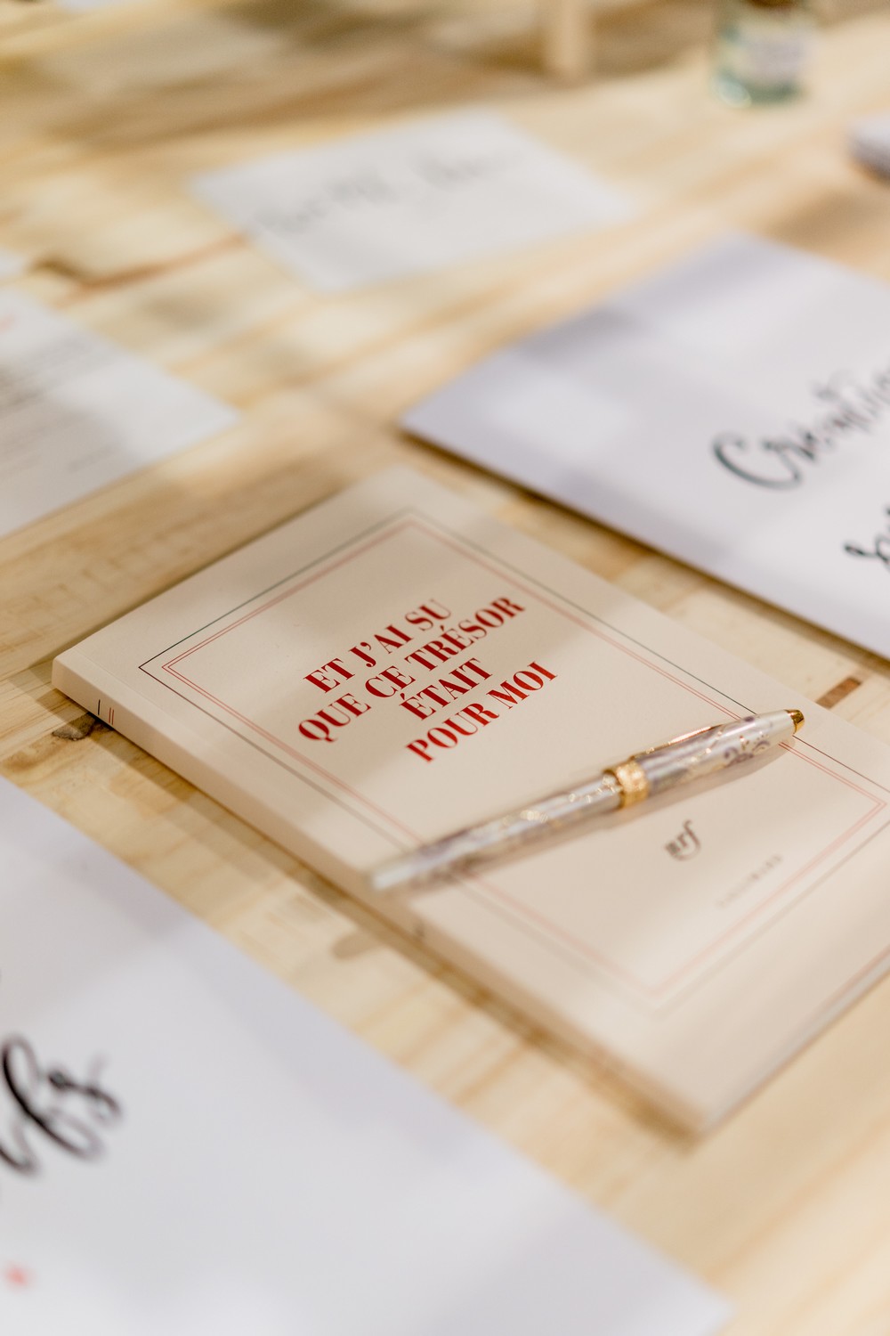 - La table des mariés, une riche collaboration du savoir-faire nantais avec les idées créatives de Label Emotion, le mobilier et la vaisselle de Maison Options, les sucettes de Sugar Sugar Nantes, la papeterie d’Anne-Lise Pucci, la décoration florale de Briant Artisan Fleuriste. Une table végétale et minimaliste comme je les aime ! L’atout charme ? Les petites boussoles en cadeaux d’invités (une jolie idée signée Calliope Travel), subtile métaphore du nouveau chemin que nos amoureux vont désormais parcourir à deux (romantique, moi ? À peine !).
